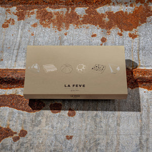 По-голямата от средните ни кутии. Осемнайсет вкуса показват три-четвърти от цялата гама вкусове на La Fѐve и без да искат, раждат музика в ушите на притворилия очи в блаженство човек. Новото в сезон 2025/2026 са вкусовете (1) Кестен, (2) Лимонова мащерка, (3) Роза, (4) Судачи и (5) Марципан от макадамия и боб тонка.
